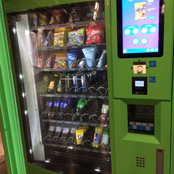 Distributeur de boissons et de malbouffe, station de métro