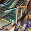 Montée en escalator de trois étages aux Galeries Lafayettes du centre commercial Prado Marseille.