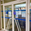 Sas d'entrée d'une station-service sur l'autoroute, à vocation d'isolation thermique et phonique