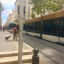 Rue piétonne, démarrage du tramway, voix des gens, signal sonore